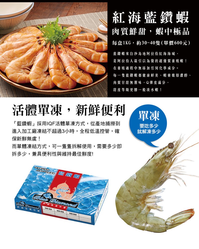 阿拉伯紅海頂級藍鑽蝦1kg*1盒