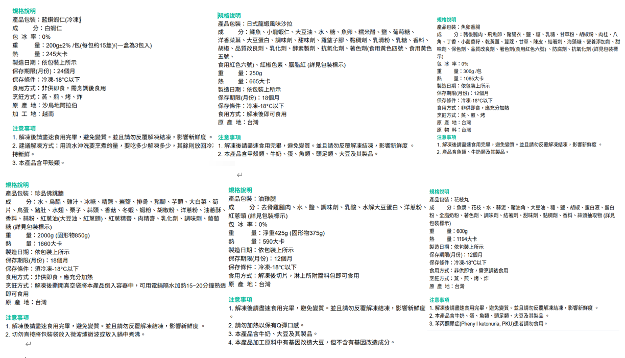 蝦、蟹、軟絲、 小卷系列